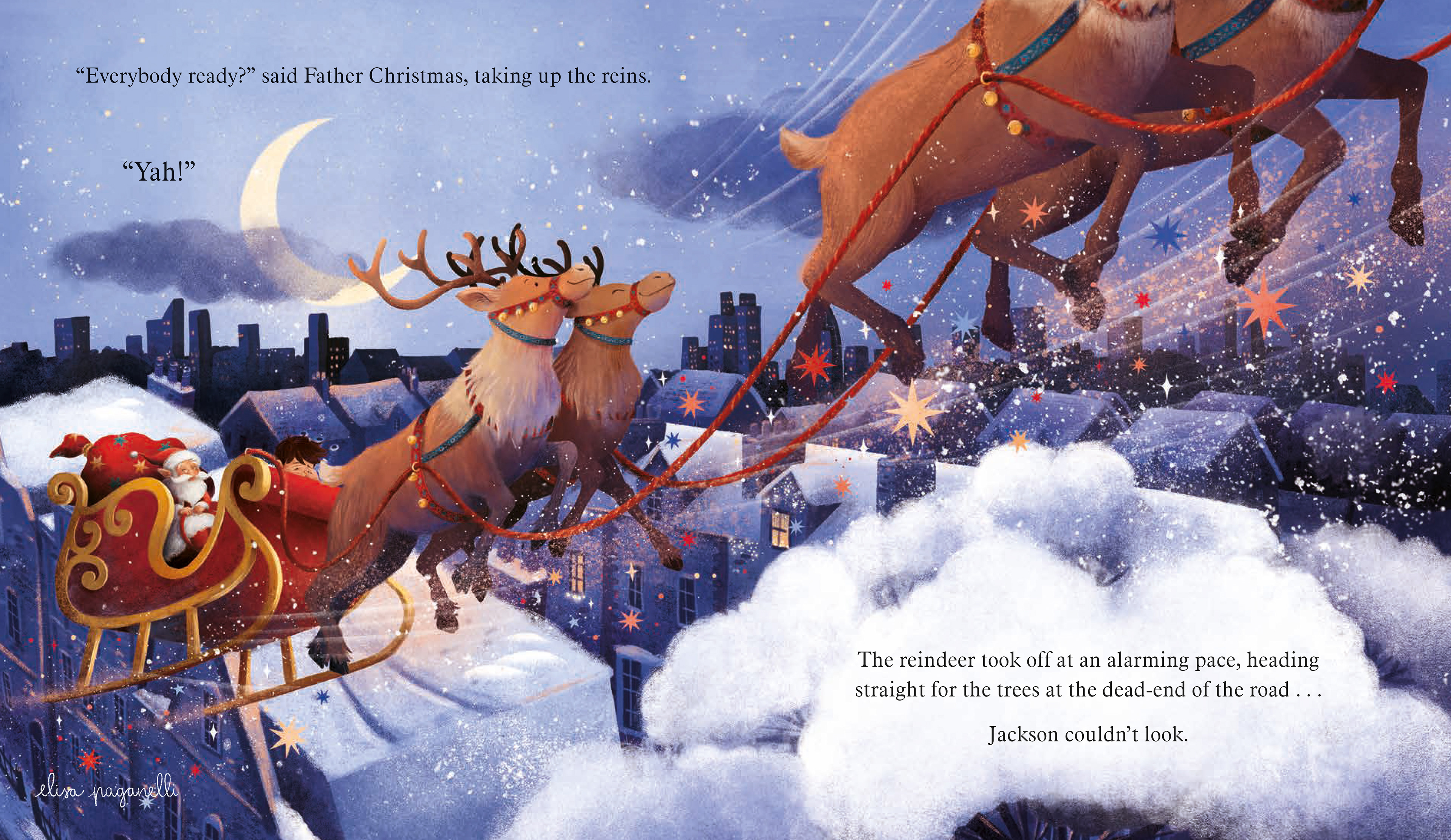 It was quarter to midnight on Christmas Eve. The lights were out all over the land, and children everywhere were asleep in their beds, dreaming of the big day to come. Well, almost everywhere...