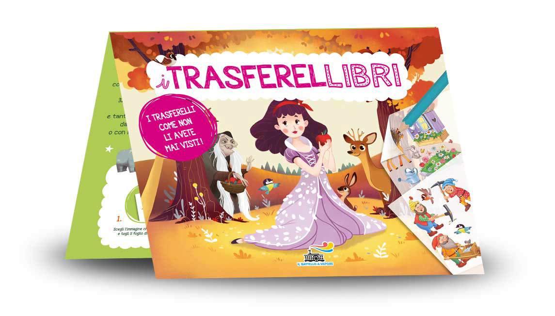 Ogni TRASFERELLIBRO contiene un mondo tutto da scoprire: 32 pagine di storia, 50 trasferelli,